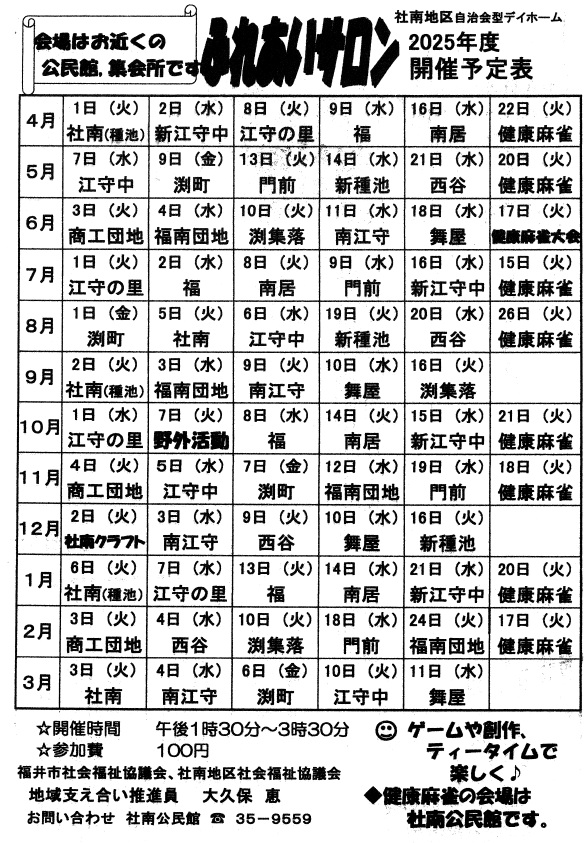 - 【公民館使用】1月13日(火)ふれあいサロン