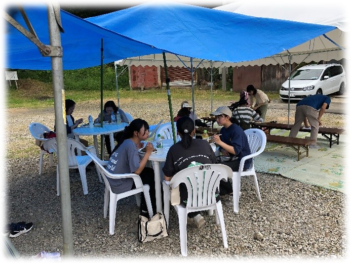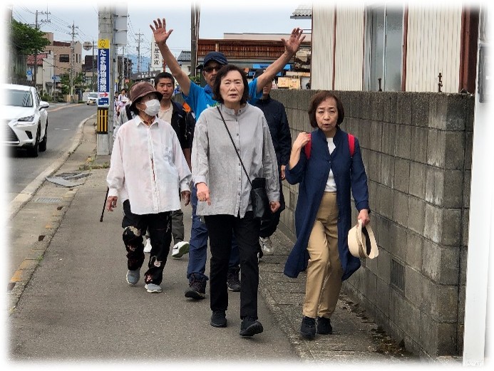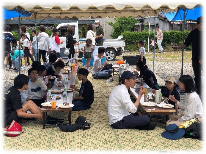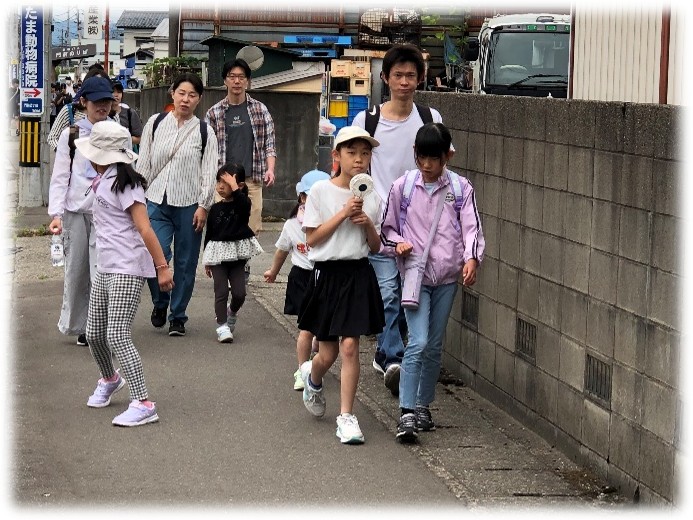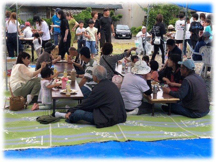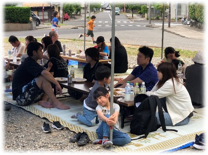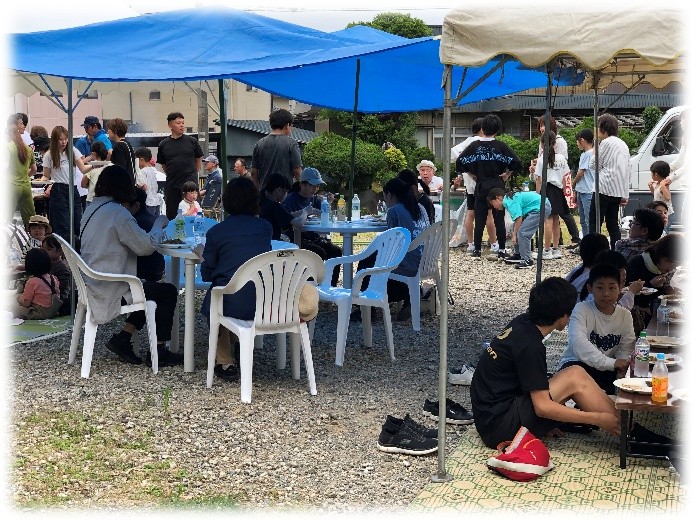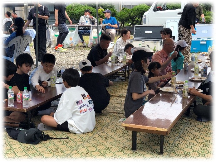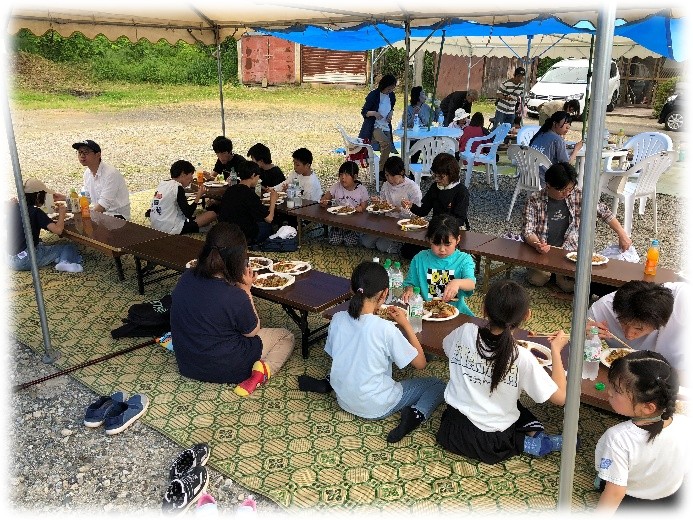みんな頑張ったよ‼ 家族、友だちみんなで足羽山動物公園まで頑張って歩きました。その後は、お楽しみのバーベキュー大会でお腹一杯! さぁ!出発だ‼ 自治会長からの挨拶と注意事項の話があって、さぁ!これから、いよいよ足羽山動物公園を目指して、みんな!頑張って歩くぞ~!行くぞ~! 着いたよ! みんな頑張って、足羽山動物公園までの山道を登り切りました。動物園の手前の坂が一番急でしたが、へこたれず歩いて、全員、そろって着いたよ‼ いよいよ、バーベキュー大会の始まりです。 北側のテントでは、若いお父さんやお母さんと子どもたちが多く、たくさんの焼き肉を食べました。 南側のテントでは、年配の方々が集っていました。食べ物より、お喋りが多かったようです。 真ん中のテントでは、大きいお姉さんやお兄さんたちが多かったみたいです。ここも、たくさん食べてもらいました。 婦人会、青壮年会のみなさんに焼き肉、焼きそばを振舞ってもらいました。例年どおりの美味しさとボリュームで、みんな満足でした。