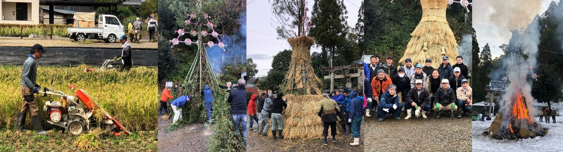左義長には束にした稲わらが必要なのですが、鎌で刈ると時間と手間がかかるので、バインダーで稲を刈ります。