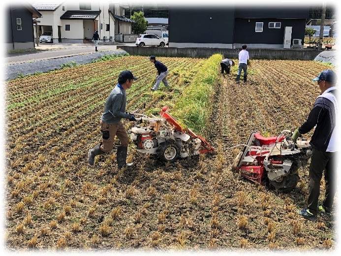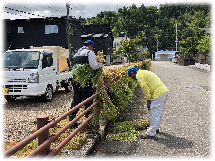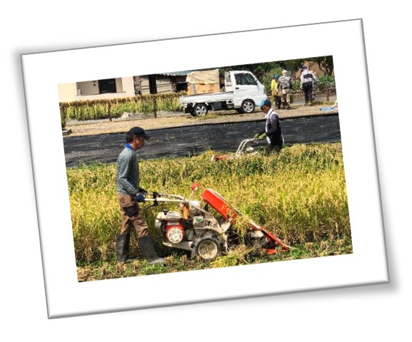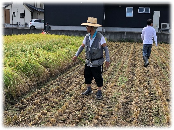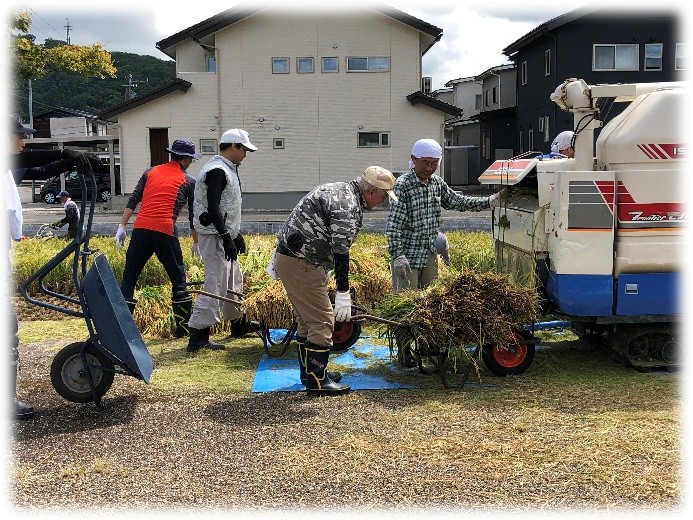 だいたい刈り取りが終了したようです。これで、どうにか来年の左義長に使う藁は確保でたみたいです。お疲れさまでした。